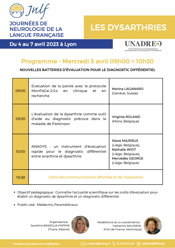 13 Fév JNLF 2023 – Session Unadreo – Avril 2023 Posted at 14:24h in CONGRÈS, COLLOQUES, JNLF by Lydie Batilly UNADREO FORMPrésentation d’UNADREO FORM Les Rencontres internationales d’orthophonie UNADREO Rencontres 2024 Rencontres 2025 Rencontres 2026 Ecole d’été 2022 Lyon DAYS 2025 AUTRES EVENEMENTSJNLF LURCOWebinaires LURCO Les JNLF 2023 auront lieu à Lyon du 4 au 7 avril 2023. La réunion paramédicale de l’Unadréo – Session orthophonie aura lieu le 5 avril 2023 INSCRIPTION Programme PDF Programme de la session UNADREO 2023